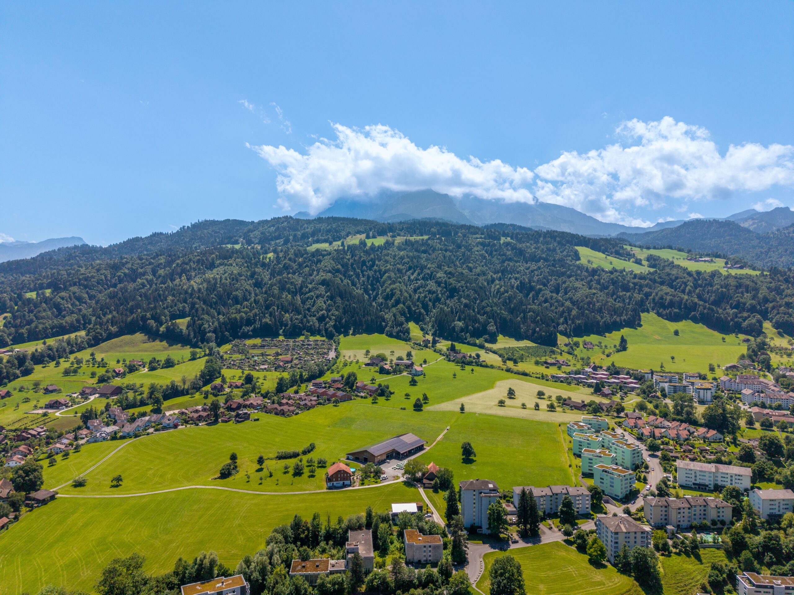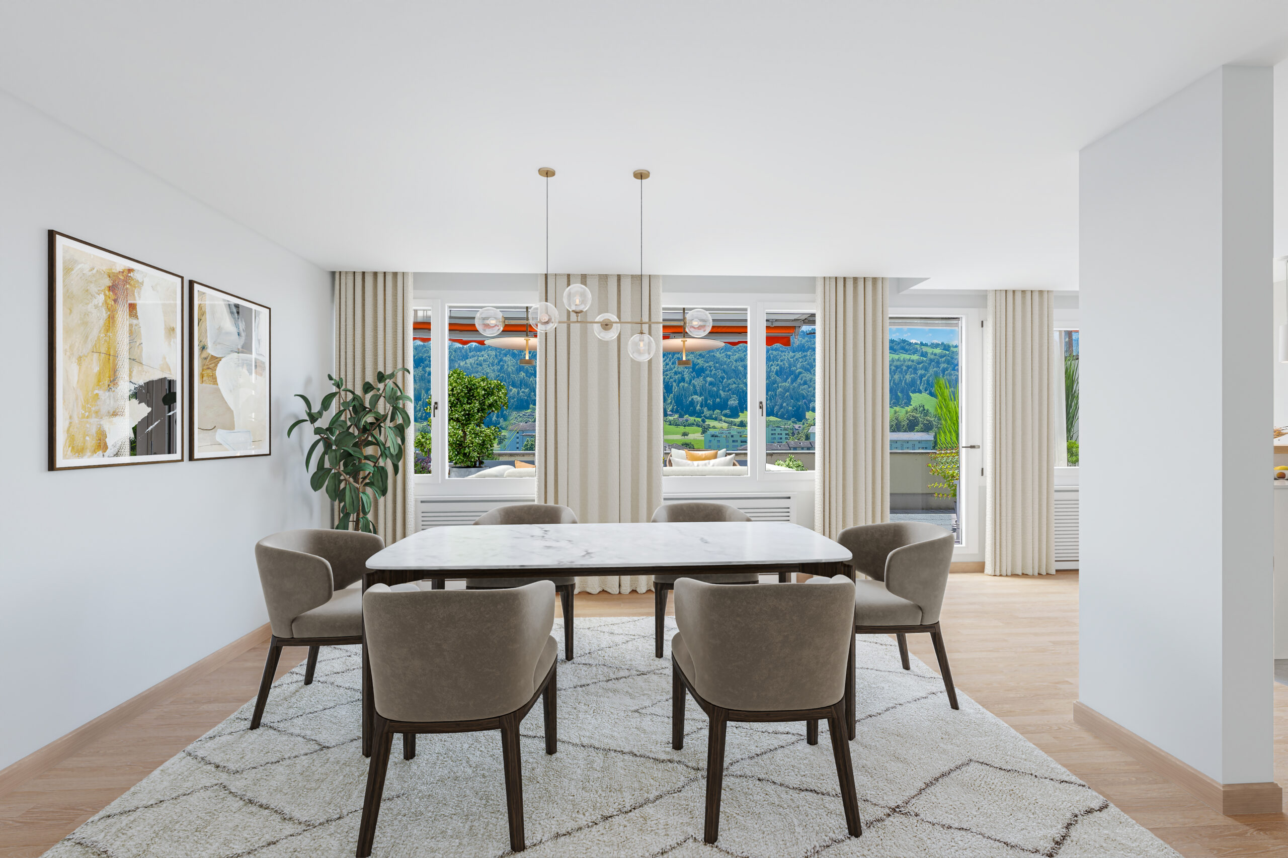 Inmitten einer naturnahen Umgebung und eines charmanten Quartiers erwartet Sie eine stilvolle Terrassenwohnung, die modernes Wohnen mit einer atemberaubenden Aussicht verbindet. Geniessen Sie den Weitblick – und ein Zuhause mit Charakter.